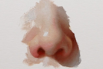 If you want to, you can add a base colour to your canvas around the cup. We used white (prepared like the rest of the colours), but you can use any colour you like, or none at all. Spread the paint across the canvas using the palette knife.