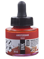 Amsterdam acrylic ink combines the best properties of ink with the benefits of acrylic paint - the ultra-fluid, vibrant colours don’ t fade and dry quickly with a permanent finish. Amsterdam acrylic ink in Naphthol...