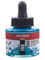 Amsterdam acrylic ink combines the best properties of ink with the benefits of acrylic paint - the ultra-fluid, vibrant colours don’ t fade and dry quickly with a permanent finish. Amsterdam acrylic ink in Turquoise...