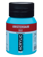 Amsterdam Acrylic offers you the broadest range of remarkably vibrant acrylic colours. This versatile paint is easy to work with and offers a smooth application. Available in 120ml tubes and 500ml jars. Amsterdam Acrylic paint in Turquoise Blue (522) is an opaque colour with an excellent lightfastness (+++). · Non-toxic · Made with high-quality, lightfast pigments · Odourless, water-based formula that becomes waterproof and permanent when dry · An exceptionally durable paint film (the binding agent consists of 100% acrylic resin) · Short drying time: thin films of paint dry within half an hour · Use the paint straight from the tube or thinned with a little bit of water or one of our acrylic mediums · Adheres to virtually any slightly porous surface, including canvas, paper, cardboard, wood, stone and cement · It can be used with Amsterdam Acrylic Ink for various media results · The specialities (metallic, pearl and reflex finishes) can be combined perfectly with the other 73 colours of the Amsterdam series · Proudly crafted in the Netherlands