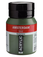 Amsterdam Acrylic offers you the broadest range of remarkably vibrant acrylic colours. This versatile paint is easy to work with and offers a smooth application. Available in 120ml tubes and 500ml jars. Amsterdam Acrylic paint in Olive Green Deep (622) is an opaque colour with an excellent lightfastness (+++). · Non-toxic · Made with high-quality, lightfast pigments · Odourless, water-based formula that becomes waterproof and permanent when dry · An exceptionally durable paint film (the binding agent consists of 100% acrylic resin) · Short drying time: thin films of paint dry within half an hour · Use the paint straight from the tube or thinned with a little bit of water or one of our acrylic mediums · Adheres to virtually any slightly porous surface, including canvas, paper, cardboard, wood, stone and cement · It can be used with Amsterdam Acrylic Ink for various media results · The specialities (metallic, pearl and reflex finishes) can be combined perfectly with the other 73 colours of the Amsterdam series · Proudly crafted in the Netherlands