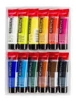 Contents: 12 x 20 ml tubes (105 Titanium White - 243 Greenish Yellow - 267 Azo Yellow Lemon - 270 Azo Yellow Deep - 398 Naphthol Red Light - 366 Quinacridone Rose - 504 Ultramarine - 564 Brilliant Blue - 623 Sap Green - 411 Burnt Sienna - 409 Burnt Umber - 702 Lamp Black).