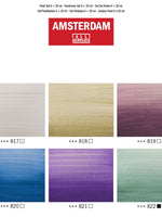 Try out all six of Amsterdam’ s specialty pearl acrylic colours with this starter set! Use them on their own or mix them with transparent colours to create new metallic shades. Apply them in thin layers on dark surfaces to maximize the pearlescent effect or add a subtle shimmer to light surfaces.