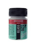 AMSTERDAM GLASS A high quality glass paint for painting smooth grounds such as glass, porcelain and plexiglas, glazed earthenware and tiles (not in damp rooms). THE PROPERTIES · Based on alkyd resin and solvent · Drying time is approx. 24 hours. Once dry the paint has a wonderful high gloss · Inflammable TIPS · First degrease the ground (for example with Talens Ox gall or methylated spirits) · For greater transparency you can add AMSTERDAM Glass medium to the paint · Once the paint has fully dried you can clean the painted object with a damp cloth and lukewarm water · The paint remains good for longer if you store the sealed bottles upside down · Use brushes with soft types of hair. After painting, clean them with white spirit and wash them out with soap and water · Stir well before use
