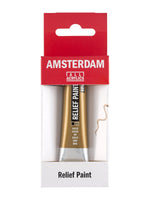 Amsterdam relief paints are a great tool to create clearly visible, raised lines with. Use it to apply 3D effects to your work or to add your signature as the perfect finishing touch to your work. Amsterdam relief paint in Gold (801) is an opaque colour with an excellent lightfastness (+++). · Made with high-quality, lightfast pigments · Odorless, water-based formula that becomes waterproof and permanent when dry · Available in 15 colours · Precise dosing nozzle for crisp 3D lines · Easy to use and adheres to both absorbent and non-absorbent surfaces, such as paper, cardboard, wood, stone, plaster, ceramics, glass and plexiglass · Proudly crafted in the Netherlands