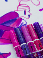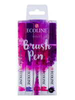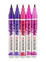 This set contains 5 Ecoline Brush pens in vivid violet shades. The Brush Pen is characterized by its flexible tip and extensive range of brilliant colours thanks to its pure, dye-based formula. The transparent colours offer the best results when used on white or very light-coloured paper. If you wish, you can easily decrease the colour intensity through thinning with water or using the Brush Pen blender. These pens are perfect for hand lettering, watercolour drawings, quick sketches and finishing touches.