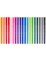 Colourful set with 24 fineliners / brush pens. Perfect for urban sketching, hand lettering, bullet journalling, brush lettering and drawing. Dual point - Brush tip for thick & thinner lines & 0.4 mm durable fibre nib for details. Water-based ink.