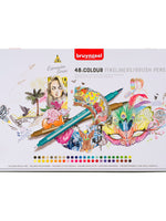 All-round set with 48 fineliners / brush pens. Perfect for urban sketching, hand lettering, bullet journalling, brush lettering and drawing. Dual point - Brush tip for thick & thinner lines & 0.4 mm durable fibre nib for details. Water-based ink. 48 different colours.