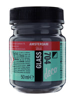 AMSTERDAM GLASS A high quality glass paint for painting smooth grounds such as glass, porcelain and plexiglas, glazed earthenware and tiles (not in damp rooms). THE PROPERTIES · Based on alkyd resin and solvent · Drying time is approx. 24 hours. Once dry the paint has a wonderful high gloss · Inflammable TIPS · First degrease the ground (for example with Talens Ox gall or methylated spirits) · For greater transparency you can add AMSTERDAM Glass medium to the paint · Once the paint has fully dried you can clean the painted object with a damp cloth and lukewarm water · The paint remains good for longer if you store the sealed bottles upside down · Use brushes with soft types of hair. After painting, clean them with white spirit and wash them out with soap and water · Stir well before use