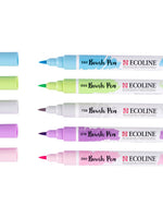 This set contains 5 Ecoline Brush pens in soft pastel shades. The Brush Pen is characterized by its flexible tip and extensive range of brilliant colours thanks to its pure, dye-based formula. The transparent colours offer the best results when used on white or very light-coloured paper. If you wish, you can easily decrease the colour intensity through thinning with water or using the Brush Pen blender. These pens are perfect for hand lettering, watercolour drawings, quick sketches and finishing touches.