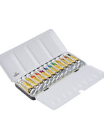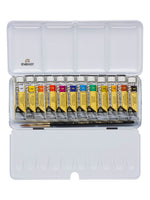 Contents: 12 x 10 ml tubes (106 Opaque White – 227 Yellow Ochre – 246 Azo Yellow Light – 296 Azomethine Green Yellow – 297 Benzimidazolone Orange – 311 Vermilion – 411 Burnt Sienna – 506 Ultramarine Deep – 535 Cerulean Blue (Phthalo) – 567 Permanent Red Violet – 675 Phthalo Green – 701 Ivory Black).