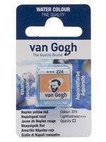This half pan of Naples Yellow Red 224 is formulated with pigment(s) PY42/PO43, is transparent, and has a lightfastness rating of +++ (at least 100 years lightfast under museum conditions).