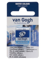 This half pan of Cobalt Blue Ultramarine 512 is formulated with pigment(s) PB29/PW6, is transparent, and has a lightfastness rating of +++ (at least 100 years lightfast under museum conditions).