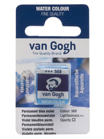 This half pan of Permanent Blue Violet 568 is formulated with pigment(s) PV19/PB29, is transparent, and has a lightfastness rating of ++ (25-100 years lightfast under museum conditions).