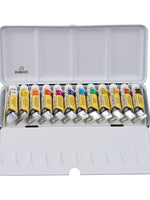 Contents: 12 x 10 ml tubes (106 Opaque White – 227 Yellow Ochre – 246 Azo Yellow Light – 296 Azomethine Green Yellow – 297 Benzimidazolone Orange – 311 Vermilion – 411 Burnt Sienna – 506 Ultramarine Deep – 535 Cerulean Blue (Phthalo) – 567 Permanent Red Violet – 675 Phthalo Green – 701 Ivory Black).