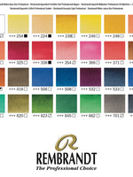 Azo Yellow Light Cadmium Free (246), Azo Yellow Deep Cadmium Free (248), Brilliant Orange (264), Vermilion (311), Permanent Madder Purple (325), Permanent Madder Lake (336), Perylene Red Deep (354), Quinarose (366), Permanent Red Deep (371), Burnt Umber (409), Burnt Sienna (411), Sepia (416), Ultramarine Deep (506), Prussian Blue (508), Mauve (532), Indigo (533), Cerulean Blue (Phthalo) (535), Emerald Green (615), Olive green (620), Sap Green (623), Hooker Green Deep (645), Permanent Green (662), Ivory Black (701), Paynes Grey (708). All colours in this general colour selection set have the highest lightfastness rating of +++ (100+ years under museum conditions). This set also includes a brush.