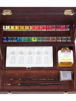 This professional wooden box set includes 28 watercolour paint pans in the following colours: Opaque White (106), Permanent Lemon Yellow (254), Naples Yellow Red (224), Gamboge (238),