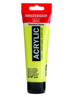 Amsterdam Acrylic offers you the broadest range of remarkably vibrant acrylic colours. This versatile paint is easy to work with and offers a smooth application. Available in 120ml tubes and 500ml jars. Amsterdam Acrylic paint in Azo Yellow Lemon (267) is a semi-opaque colour with a very good lightfastness (++). · Non-toxic · Made with high-quality, lightfast pigments · Odourless, water-based formula that becomes waterproof and permanent when dry · An exceptionally durable paint film (the binding agent consists of 100% acrylic resin) · Short drying time: thin films of paint dry within half an hour · Use the paint straight from the tube or thinned with a little bit of water or one of our acrylic mediums · Adheres to virtually any slightly porous surface, including canvas, paper, cardboard, wood, stone and cement · It can be used with Amsterdam Acrylic Ink for various media results · The specialities (metallic, pearl and reflex finishes) can be combined perfectly with the other 73 colours of the Amsterdam series · Easy to use with the Amsterdam dosing nozzle · Proudly crafted in the Netherlands