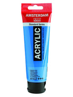 Amsterdam Acrylic offers you the broadest range of remarkably vibrant acrylic colours. This versatile paint is easy to work with and offers a smooth application. Available in 120ml tubes and 500ml jars. Amsterdam Acrylic paint in Primary Cyan (572) is a semi-transparent colour with an excellent lightfastness (+++). · Non-toxic · Made with high-quality, lightfast pigments · Odourless, water-based formula that becomes waterproof and permanent when dry · An exceptionally durable paint film (the binding agent consists of 100% acrylic resin) · Short drying time: thin films of paint dry within half an hour · Use the paint straight from the tube or thinned with a little bit of water or one of our acrylic mediums · Adheres to virtually any slightly porous surface, including canvas, paper, cardboard, wood, stone and cement · It can be used with Amsterdam Acrylic Ink for various media results · The specialities (metallic, pearl and reflex finishes) can be combined perfectly with the other 73 colours of the Amsterdam series · Easy to use with the Amsterdam dosing nozzle · Proudly crafted in the Netherlands