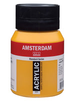 Amsterdam Acrylic offers you the broadest range of remarkably vibrant acrylic colours. This versatile paint is easy to work with and offers a smooth application. Available in 120ml tubes and 500ml jars. Amsterdam Acrylic paint in Gold Ochre (231) is a semi-opaque colour with an excellent lightfastness (+++). · Non-toxic · Made with high-quality, lightfast pigments · Odourless, water-based formula that becomes waterproof and permanent when dry · An exceptionally durable paint film (the binding agent consists of 100% acrylic resin) · Short drying time: thin films of paint dry within half an hour · Use the paint straight from the tube or thinned with a little bit of water or one of our acrylic mediums · Adheres to virtually any slightly porous surface, including canvas, paper, cardboard, wood, stone and cement · It can be used with Amsterdam Acrylic Ink for various media results · The specialities (metallic, pearl and reflex finishes) can be combined perfectly with the other 73 colours of the Amsterdam series · Proudly crafted in the Netherlands