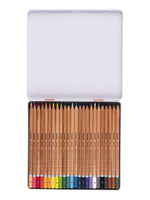 24 high-quality water colour pencils with a strong, thick 2.9 mm core, manufactured with quality pigments for good colour transfer and complete solubility in water. Can be applied both wet and dry. Paintbrush included.