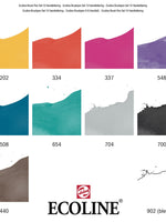 This set contains 10 Ecoline Brush pens in n various vivid shades, perfect for hand lettering. The Brush Pen is characterized by its flexible tip and extensive range of brilliant colours thanks to its pure, dye-based formula. The transparent colours offer the best results when used on white or very light-coloured paper. If you wish, you can easily decrease the colour intensity through thinning with water or using the Brush Pen blender. These pens are perfect for hand lettering, watercolour drawings, quick sketches and finishing touches.
