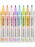 This set contains 10 Ecoline Brush pens in soft pastel shades. The Brush Pen is characterized by its flexible tip and extensive range of brilliant colours thanks to its pure, dye-based formula. The transparent colours offer the best results when used on white or very light-coloured paper. If you wish, you can easily decrease the colour intensity through thinning with water or using the Brush Pen blender. These pens are perfect for hand lettering, watercolour drawings, quick sketches and finishing touches.
