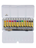 Contents: 12 x 10 ml tubes (247 Azo Yellow Medium – 264 Brilliant Orange – 296 Azomethine Green Yellow – 354 Perylene Red Deep – 378 Transparent Oxide Red – 567 Permanent Red Violet – 583 Phthalo Blue Reddish – 585 Indanthrene Blue – 593 Quinacridone Purple Bluish – 681 Phthalo Green Yellow – 2 x 735 Oxide Black).