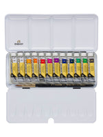 Contents: 12 x 10 ml tubes (248 Azo Yellow Deep – 297 Benzimidazolone Orange – 364 Quinacridone Red – 368 Quinacridone Rose Magenta – 583 Phthalo Blue Reddish – 585 Indanthrene Blue – 593 Quinacridone Purple Bluish – 675 Phthalo Green – 681 Phthalo Green Yellow – 715 Neutral Tint – 2 x 106 Opaque White).